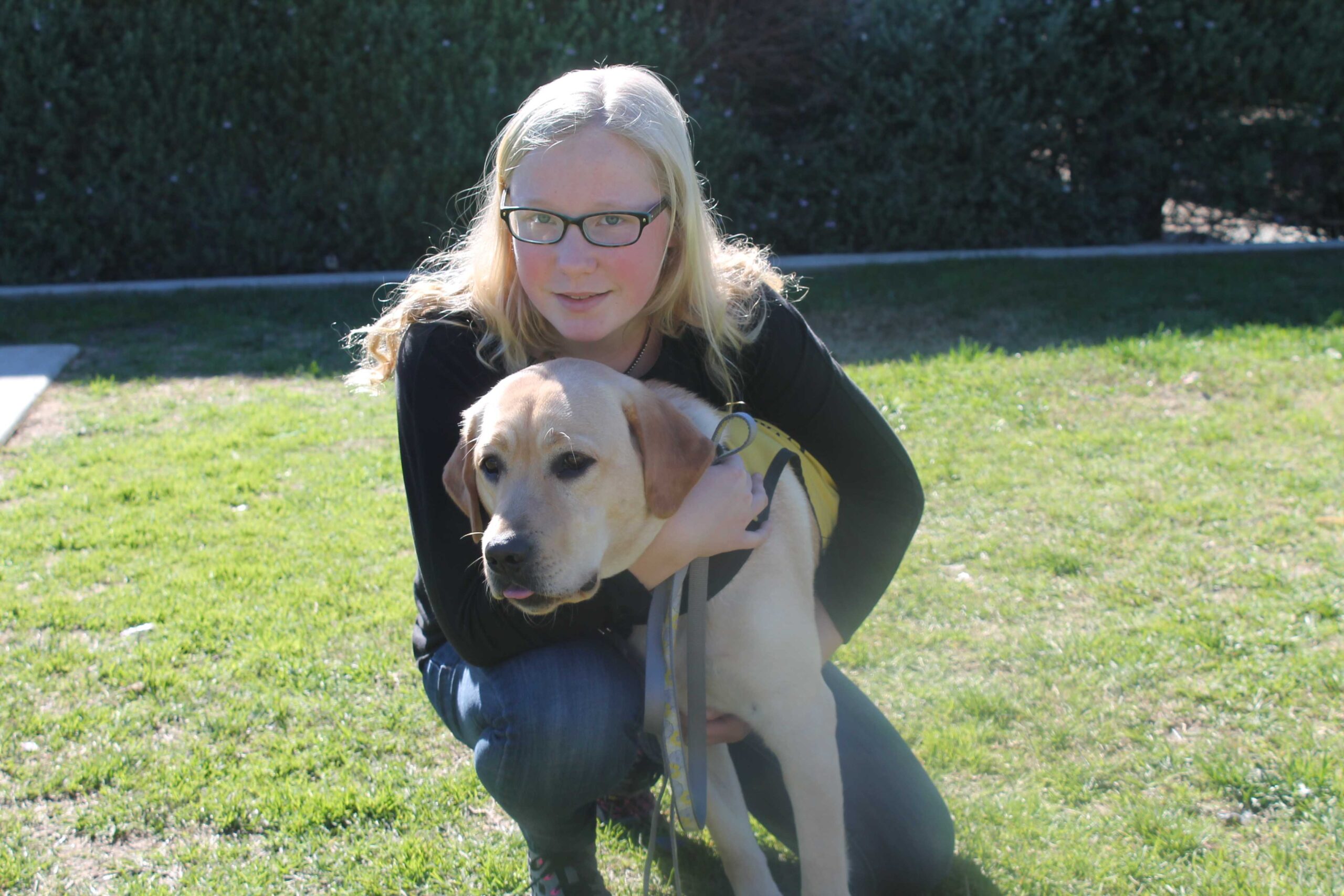 Clare Knutson helps train the pup into a seeing-eye dog. Credit: Sarah Kagan/The Foothill Dragon Press
