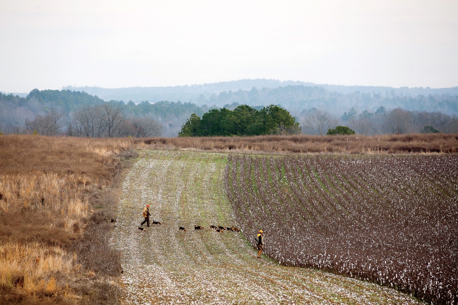 And how they run. On Tuesdays, Thursdays, and Saturdays throughout the season, Bishop’s farm hosts a historic pack of beagles—descendants of the very same hound pack that led him on his first rabbit hunt when he was fourteen years old. Back then, his scoutmaster Don Efird ran the pack. Now Efird’s son, Lee, directs the beagles. They run across ridges where Whigs and Tories clashed in the Battle of Colson’s Mill, an American Revolution skirmish. They run along the river crossing used by Confederate troops. They run past farmhouses that date to the 1820s. They run thickets and ridges and fields of native grasses—big bluestem and Indian grass and partridge pea. The hunters aren’t far behind.