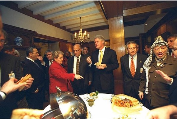 George H.W. Bush continued the tradition of hot dogs at diplomatic meals with France’s then-President Nicolas Sarkozy at the Bush family home in Kennebunkport, Maine. But perhaps hot dogs most notably changed the course of U.S. foreign involvement in 1999, when President Clinton traveled to Norway to meet and negotiate Middle East Peace with Prime Minister Ehud Barak of Israel and Chairman Yasser Arafat of the Palestinian Authority. After their meeting, the leaders gathered and enjoyed kosher hot dogs together at the U.S. Ambassador’s Residence in Oslo.
