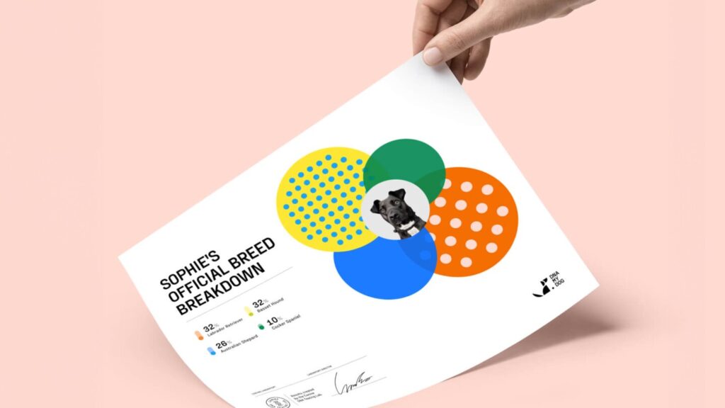 The test works simply: order your kit, register it online, swab your dog’s cheek with the included sterile brush, send it back in the prepaid envelope, and wait for your custom report. You’ll even get a frame-worthy certificate showing your dog’s heritage.